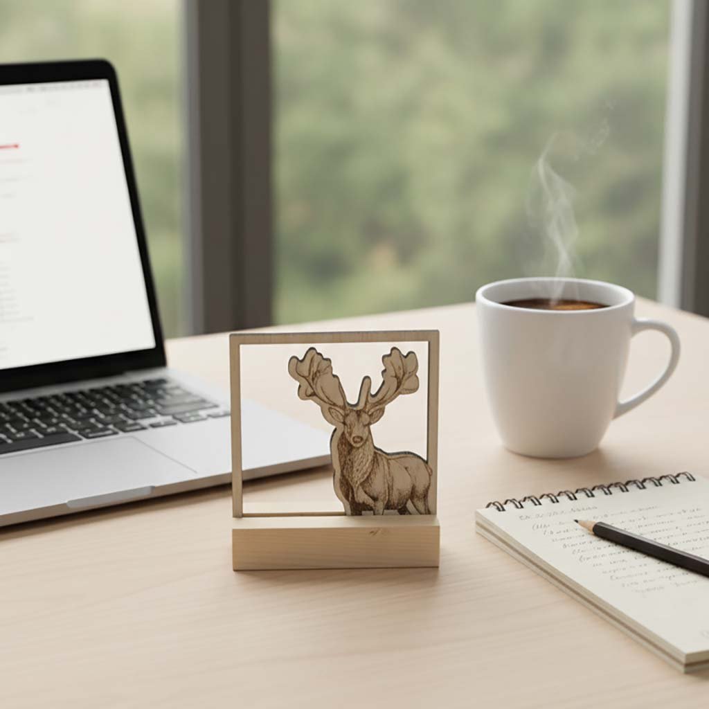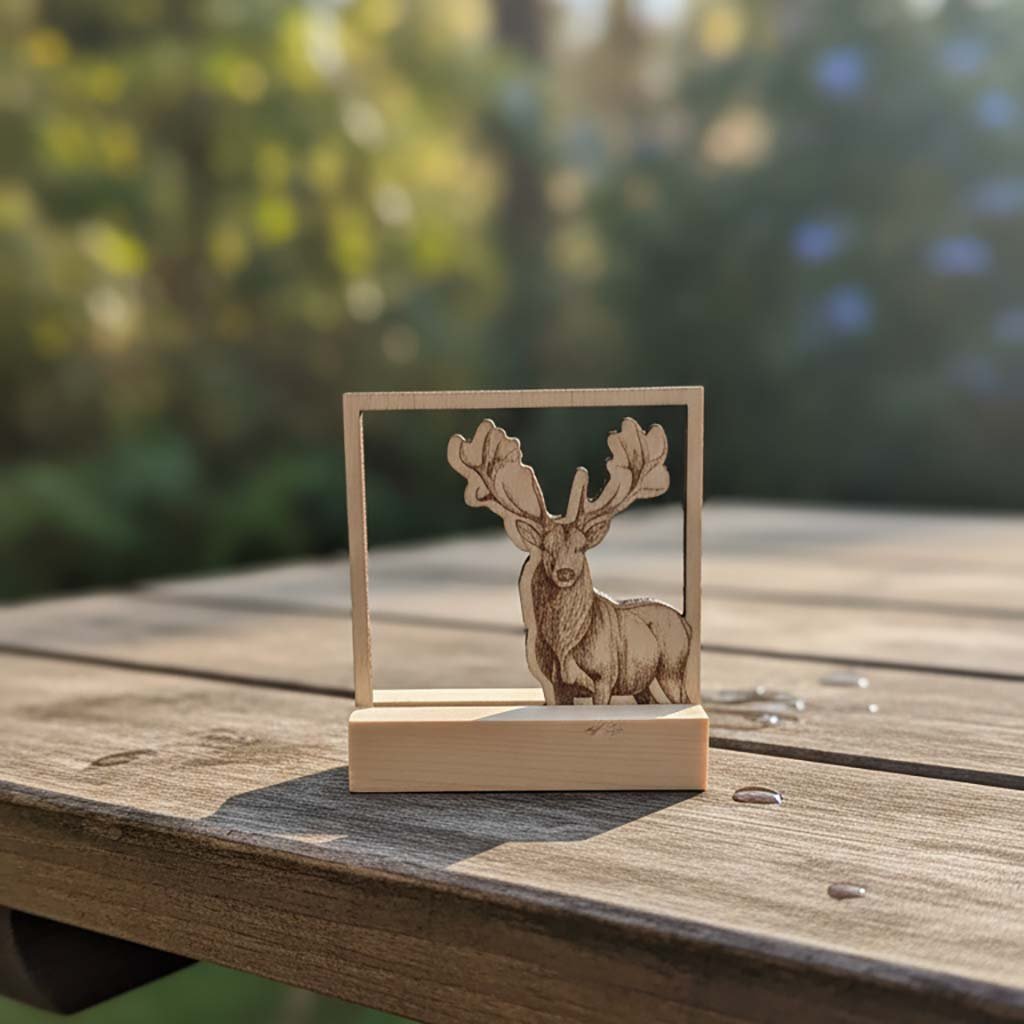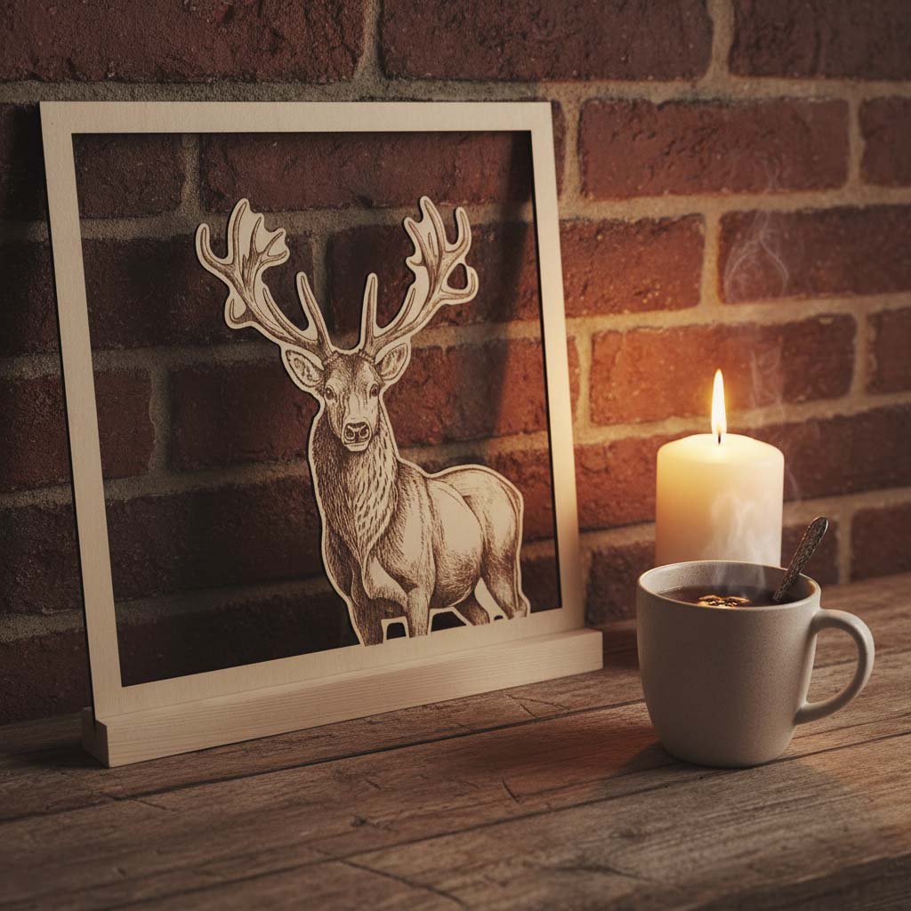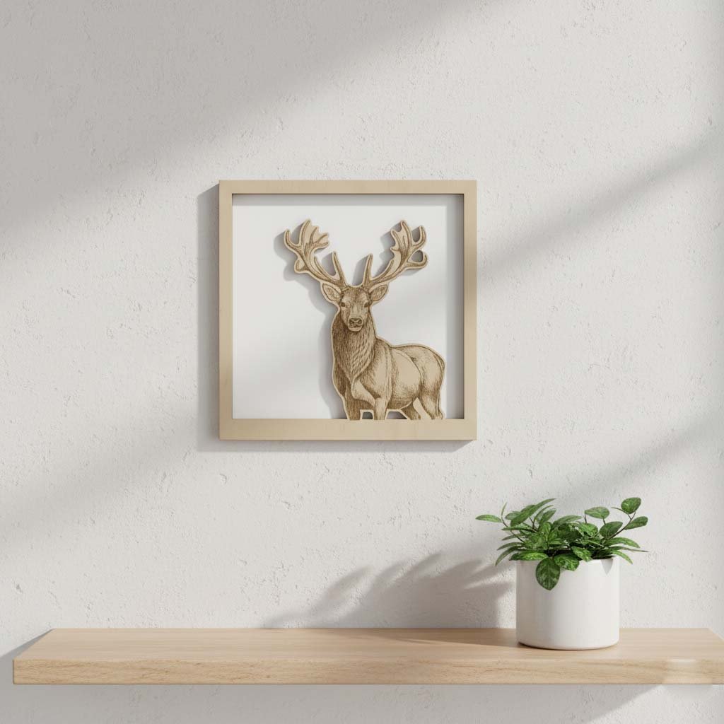 Dřevěný obraz s motivem majestátního jelena je vyroben z kvalitní březové překližky, která zajišťuje dlouhou životnost a jedinečný vzhled každého kusu. Detailní laserové gravírování dodává obrazu realistický a umělecký charakter. Obraz je vhodný do obývacího pokoje, pracovny, chaty nebo jako originální dárek pro milovníky přírody.