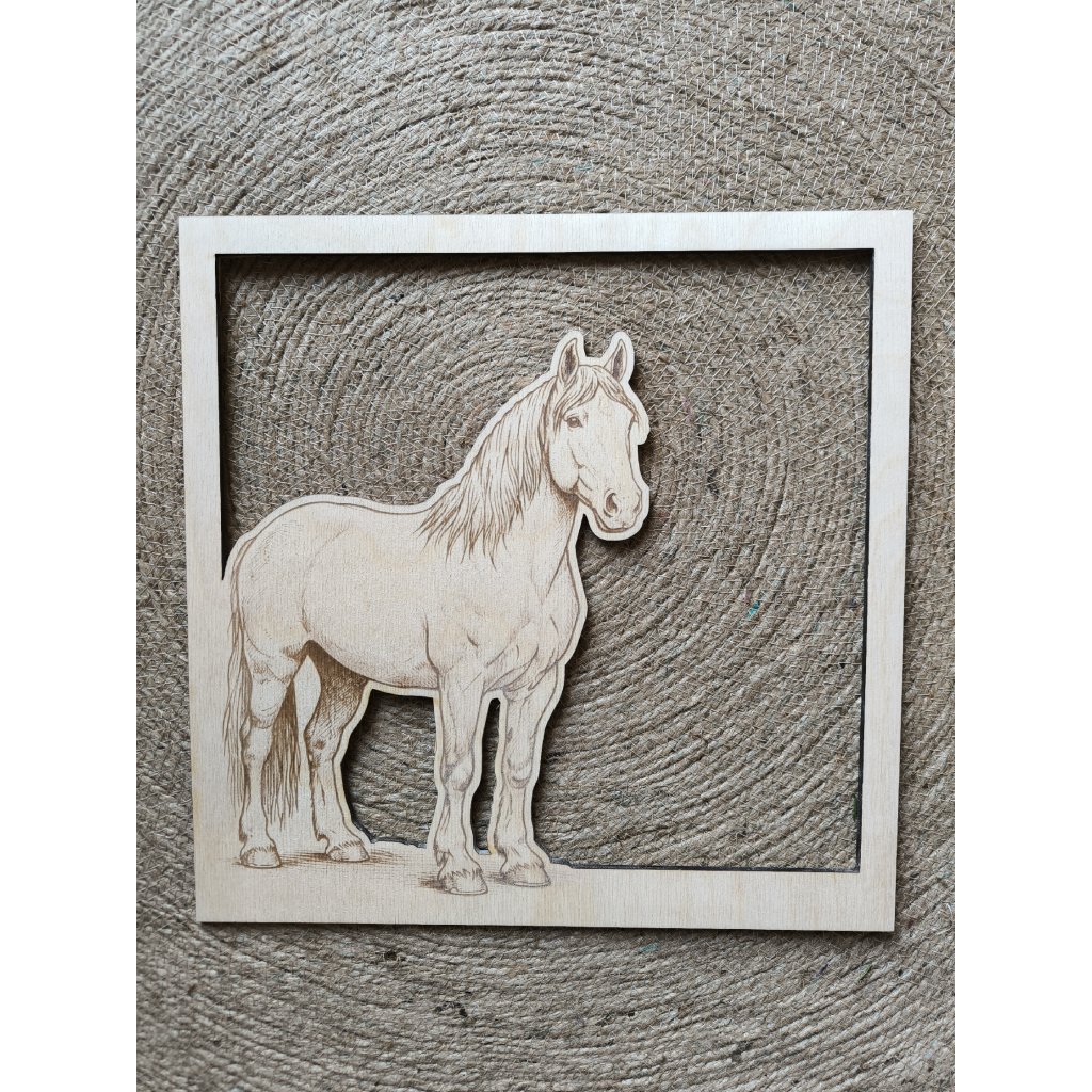 Vzdušný a lehký obraz na stěnu s výřezem koně, ohraničený rámem. Bez Vrtání .