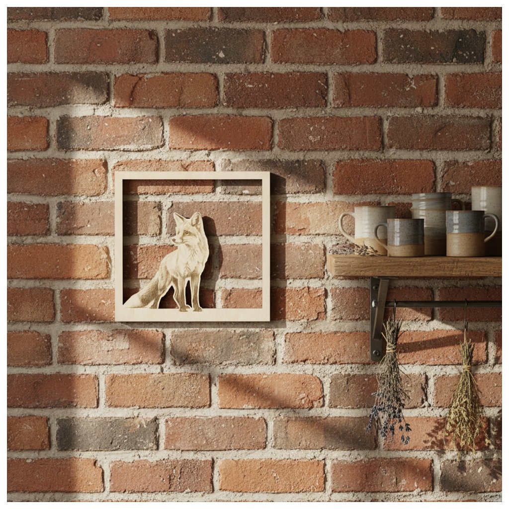 Vzdušný a lehký obraz na stěnu s výřezem lišky ohraničený rámem. Bez Vrtání