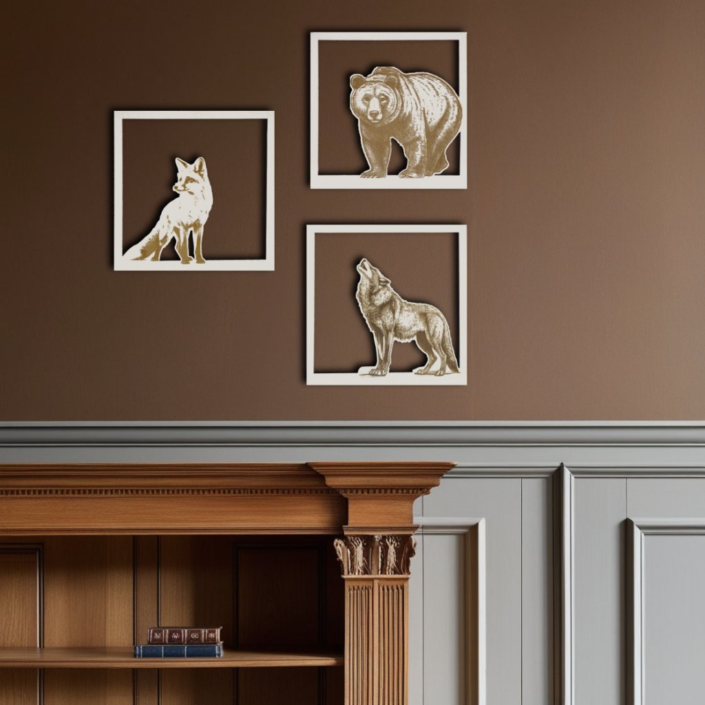 Vneste do svého interiéru kousek divoké přírody s touto stylovou trojicí dřevěných obrazů – vlka, medvěda a lišky. Každý motiv je originální autorská kresba, která byla přesně a jemně gravírována do dřeva pomocí moderní technologie.